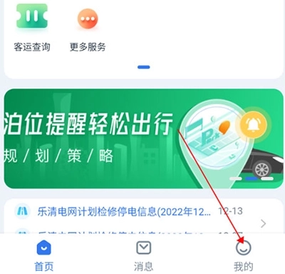 1、首先打开乐清行应用,进入首页后能看到智慧停车、公交查询、公共自行车等服务选项,用户可依据自身需求进行选择。