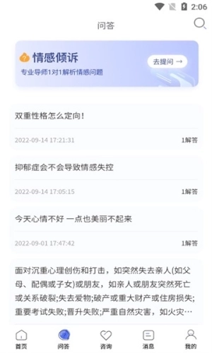 心晴陪伴是陕西铂睿网络科技有限公司打造的心理咨询平台,用户能在平台上向专业咨询师倾诉生活中的烦心事,咨询师会针对性解答情感困惑,助力用户摆脱烦恼、重拾积极向上的生活动力。平台还设有婚恋情感、亲子关系、工作压力等多个板块,用户可发布各类问题,等待其他用户的分享与解答,从多元视角了解他人对事物的看法,有需求的朋友不妨体验一下!