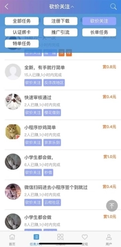 众包悬赏软件让兼职赚钱变得更轻松,它提供种类丰富的任务,像承接悬赏任务之类的,用户不管何时何地都能做兼职赚钱。这个应用不仅适合大学生、宝妈这类人群,也给城市里有空闲时间的人创造了赚钱机会。用户可以挑选投票、转发等不同类型的任务,达成在玩乐中赚钱的目的。不管是帮忙砍价、领取奖励,还是完成各类任务,都能得到额外的收入。借助这个应用,用户能享受到高薪任务多、结算快,还有一元就能提现的好处,同时还能获取平台给的奖励和红包。