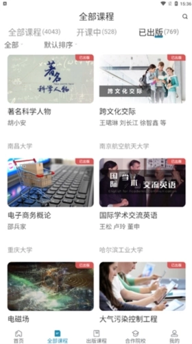 3、打开出版课程,查看高校已出版的课程