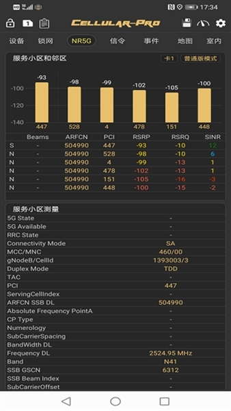 2. 呈现5G、LTE、GSM、WCDMA的无线测量参数。