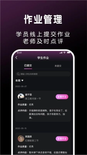 学员可以在线提交作业,音乐老师可以在线及时的点评