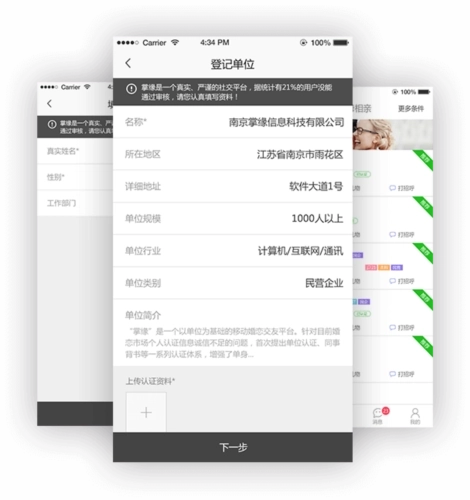 “掌缘”是一个以单位为基础的移动婚恋交友平台。