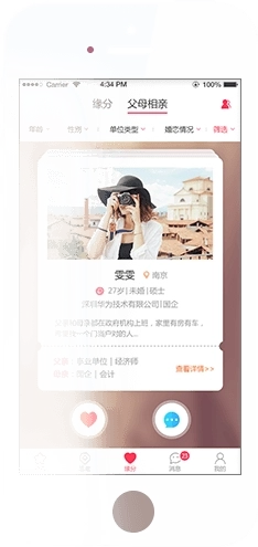 掌缘单位婚恋是南京掌缘信息科技有限公司为广大事业与机关单位用户量身打造的掌上婚恋相亲平台,在这里你能遇到来自政府机关、大型企事业单位等团体的用户,助力大家找到契合自己的理想爱情!你可以通过这款软件发现身边与自己条件相当的另一半,这样彼此更容易拥有共同的交流话题,若有需要,欢迎来体验掌缘!