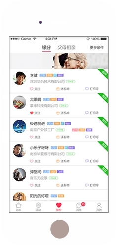 7.把传统线下的单位单身联谊活动模式转移到手机平台,使条件相近的单身人群能够开展“门当户对式”的交友互动;