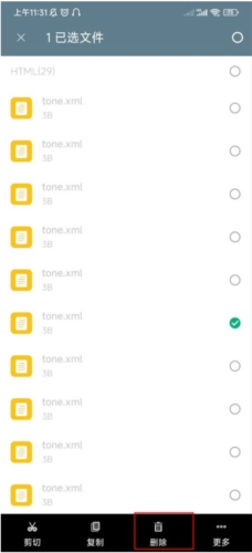 3、若需删除某一项文档,只需选中文档并点击底部的删除按钮即可。