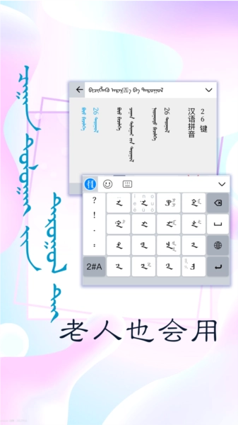 这是为蒙古族用户打造的手机必备输入法,有了它,你输入蒙古文会更高效快捷。