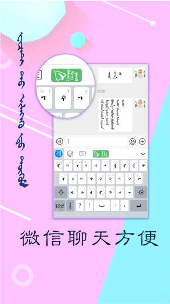 这款软件可与微信实现完美兼容,用户在使用微信聊天时,也能顺畅输入蒙古文。