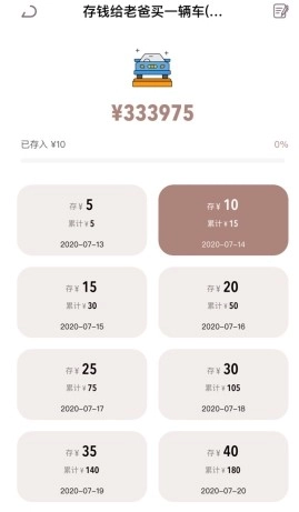 1、系统会自动生成每日需存入的金额,通过界面图表能够查看存钱进度,已完成的存钱计划还可以归档后随时查看。