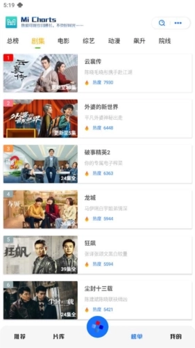 6、影视排行板块设有多种榜单,涵盖新片榜、高分榜、热播榜等,用户可随心浏览,各类热门影视作品都能在这里找到。