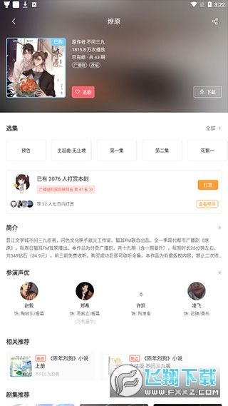 《燎原》广播剧:评分99分,由郑希为汤索言配音,赵毅演绎陶晓东,凌飞担任导演,改编自不问三九的原著。它绝对能划入“广播剧比原著更惊艳”的行列!这是我至今循环次数最多的一部广播剧,几乎每个失眠的夜晚,我都是靠听它入眠的,具体听了多少遍连自己都数不清——足以见得这部剧有多让人觉得舒适、多能疗愈人心。