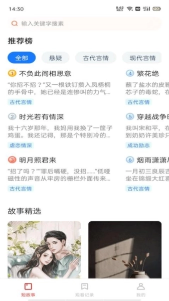 3、在线搜索功能:可通过关键词进行搜索,只需一键操作就能找到自己感兴趣的短故事,既节省时间又十分高效。