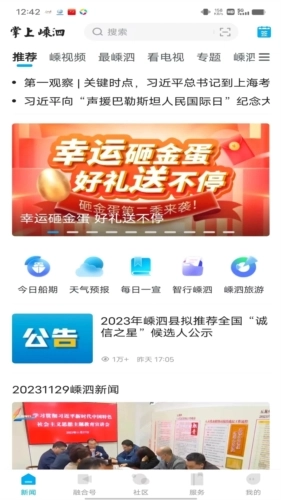 掌上嵊泗是嵊泗县融媒体中心开发的一款综合应用,整合了新闻、服务、政务与商务功能。用户能在应用里便捷浏览各类新闻,涵盖当地热点话题和全球重要新闻;还可获取生活服务,比如查询本地天气、了解船期信息等。该应用界面简洁明了,操作简单易用,适合各年龄段用户使用。