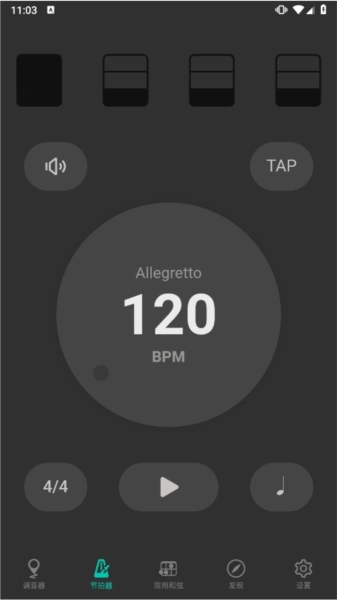 节拍器:用于提供稳定的节奏节拍,帮助用户练习节奏感和速度控制。