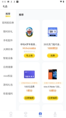 2、积分兑换:您可以使用积分进行礼品兑换。