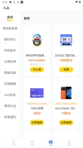 我的vivo还提供了专属福利,包括签到福利、会员福利和积分福利。您可以通过签到获取积分,参与趣味活动;免费领取购物、生活娱乐、游戏等礼包;将积分用于抵现、抽奖或兑换话费及实物礼品。同时,提供便捷全面的客户服务入口,让您在家中就能解决手机疑难杂症。