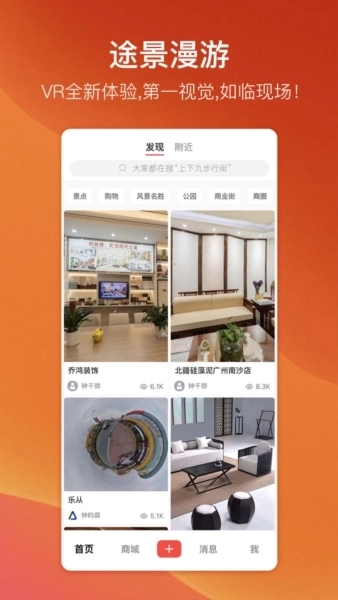 途景漫游是一款VR购物应用,主打沉浸式购物体验,能让你获得前所未有的享受,是值得一试的网购新选择。它不只是让你体验VR技术,更将VR推向了实用层面:在这里,你可以通过VR探索身边与远方的世界;可以提前用VR查看酒店、民宿和旅游景点,制定行程计划,直观感受真实场景,避免预期与现场的落差;还能远程看房,打破传统2D展示的局限,真正进入3D VR看房的新时代。