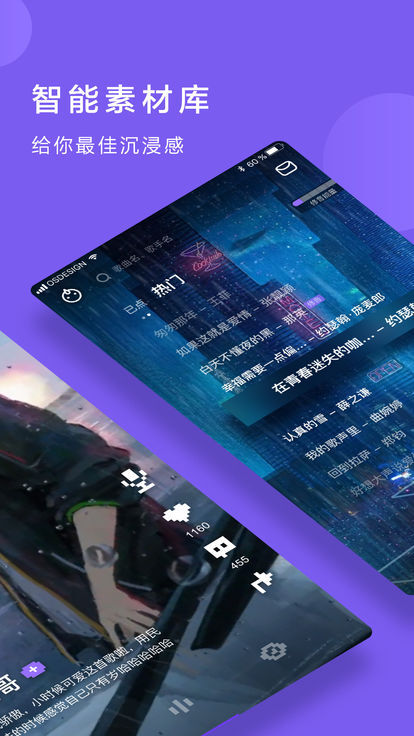 【智能素材库】: 我们从众多素材里,为海量歌曲精挑细选适配的背景素材,助你更真切投入到演唱状态,尽情释放你的真情实感(zqsg)!