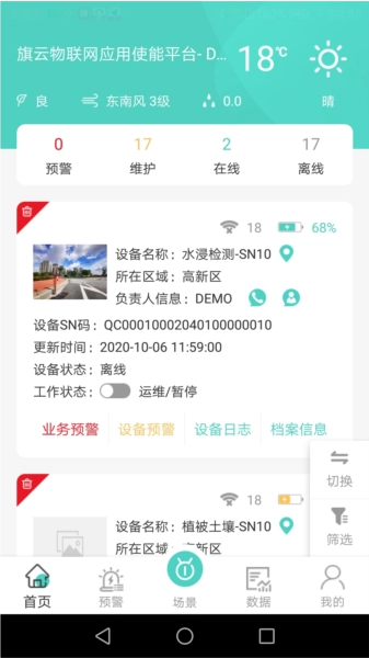 旗云智联系统开启了智能设备管理的全新篇章,该软件聚焦于旗云公司与旗云物联公司的创新设备管理工作。它覆盖了水质监测、水浸监测、井盖监控、门磁检测以及雨量监测等多种智能设备,能够提供全面的设备定位、实时数据、预警分析和历史记录功能。无论在什么时间、什么地点,用户只需一键操作,就能处理预警信息,快速响应设备状态,为客户群体带来高效且周到的服务体验。凭借精准详实的数据分析,该系统可以帮助用户做出更明智的业务决策,旗云智联系统,让智能管理变得触手可及。