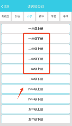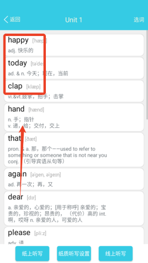 1. 开启小学英语单词通之后,首先挑选对应的年级与教材版本,这时系统便会依照单元罗列需要学习的单词内容。