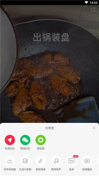 要是你有喜欢和你一起做美食的朋友,不妨点击右上角分享给他,这样就能一起观看制作过程啦。