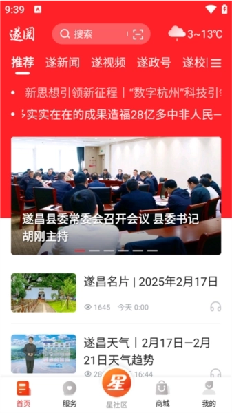1、在软件的首页界面,我们可以浏览到各类新闻板块,涵盖推荐、遂新闻、遂视频、遂政号等内容。