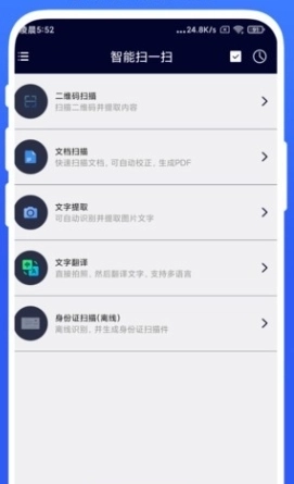 智能扫一扫软件,是您日常生活和工作的得力助手,它以其强大的扫描和识别能力,让您轻松应对各种场景。只需轻触屏幕,即可实现文字提取、文档转换、二维码解析等多种功能,让效率倍增。软件还注重用户体验,不断进行功能优化和升级,确保用户始终获得稳定可靠的使用体验。现在就加入智能扫一扫的用户行列,让工作与生活更加便捷,感受科技带来的无穷魅力。