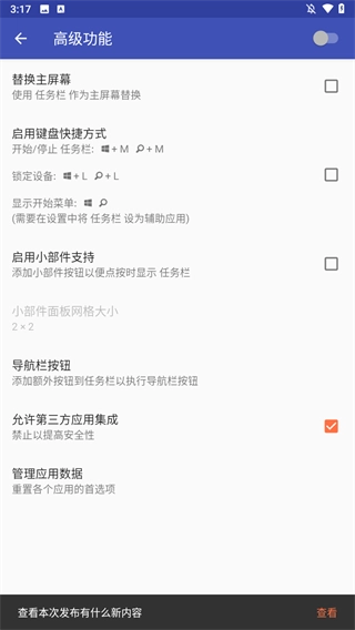 taskbar是一款专业实用的手机任务栏修改工具,它能帮你把开始菜单和最近使用的软件移到屏幕上方,方便随时触碰操作;不仅支持Android 10桌面模式,还兼容外部显示设备。这款软件配置选项丰富,可固定常用应用、隐藏不想显示的应用,更针对键盘和鼠标操作设有专属设置,让你畅享纯净高效的多任务体验,使用起来轻松便捷。