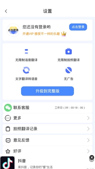 点击右上角的三条横线图标即可登录,并且还能查看自己拍照翻译的历史记录。