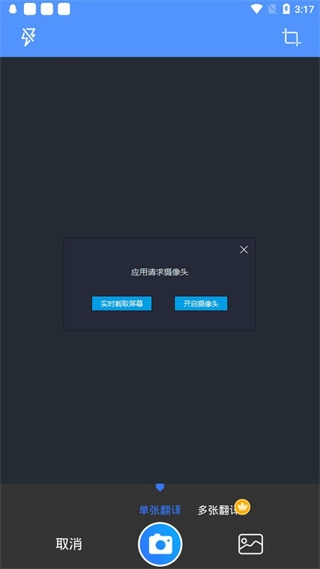 这款软件除了具备语音翻译功能外,还支持拍照翻译,不过在使用拍照翻译功能前,需要先同意相关权限申请。