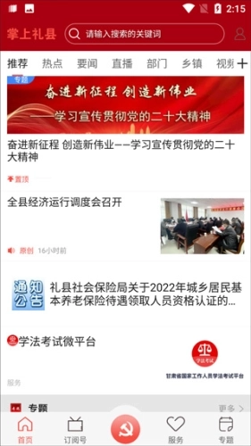 掌上礼县是一款由礼县融媒体中心专为礼县居民打造的新闻资讯软件,集多种新闻、政务、居民服务功能,带来全新的智慧生活。软件内时刻会为用户带来实时新闻,有当地权威新闻中心发布,随时随地了解身边事。直播、广播、短视频、图文结合等多种形式分享新闻资讯。多个便民窗口的入驻,让用户能够轻松办理一些线上业务,操作起来非常方便,有需求的用户欢迎!