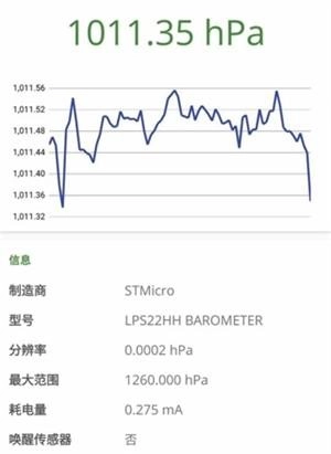 点击压力传感器,这里的压力传感器指的是气压计,通常在正常情况下数值会如下所示(数值可能存在差异)。