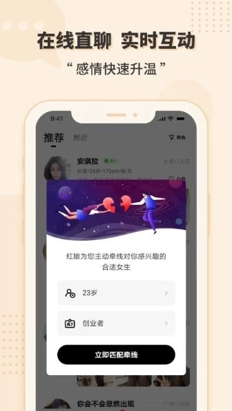 【即时互动】减少无目标的尬聊,同城匹配畅谈更直接,对TA有好感,可直接进行聊天。