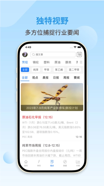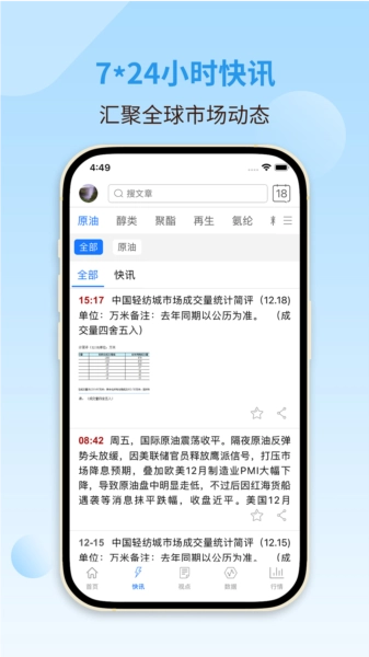 在应用的主界面,您能够浏览到各类行业资讯,涵盖化纤、棉纺织、石化等领域的最新动态。