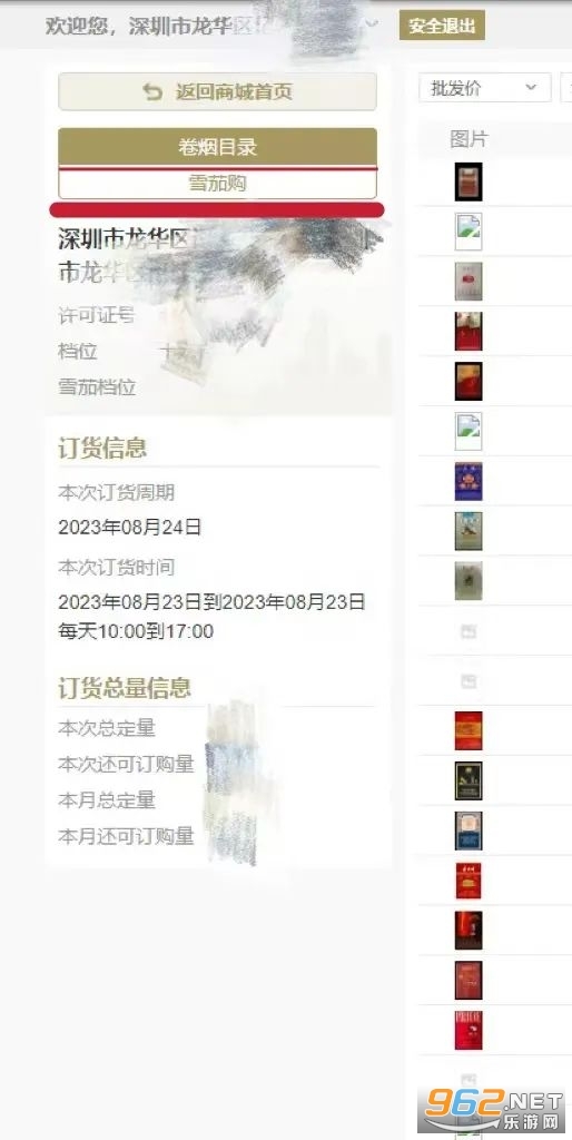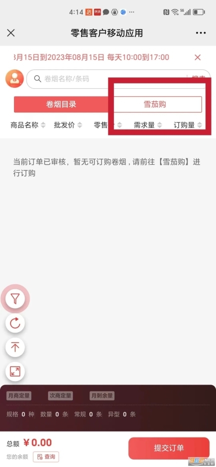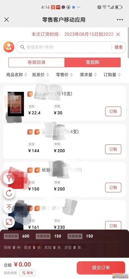 在全新的订货平台上,雪茄烟与常规卷烟需分开进行订购。其中,雪茄烟的订货界面具体如下: