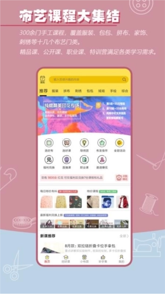 2、开设布艺课程教学,助力用户进一步提升自身的布艺技能,获取更多实用支持;