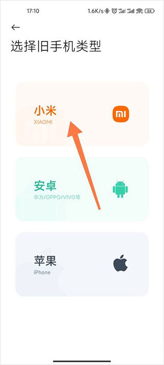 3、于旧手机类型里挑选【小米】,需依据旧手机的实际类型来进行选择。