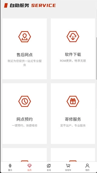2、点击服务,即可查看各种售后服务,包含售后网点即rom等自助服务;