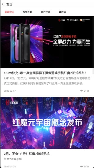 3、点击发现,即可查看最新的红魔资讯;