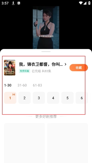 4、在选集页面,可借助【1-30】这类批次页码选择对应的集数,还能查看短剧【已完结-共83集】的状态,从而快速找到想看的内容。