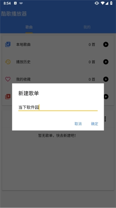 创建歌单:在首页点击“+”图标,输入歌单名称后确认,即可生成新歌单。