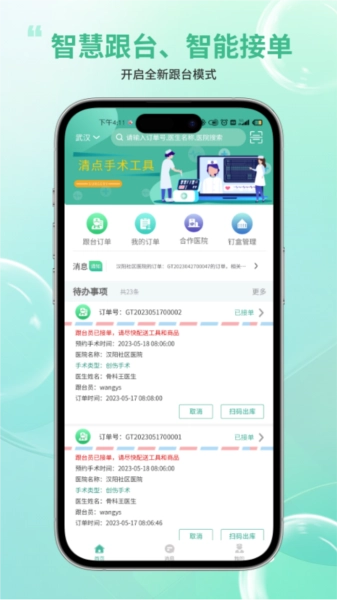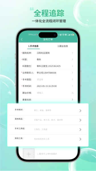 智能化手术报台系统:对从下单到结账的整个流程进行管理,有效提升业务效率。