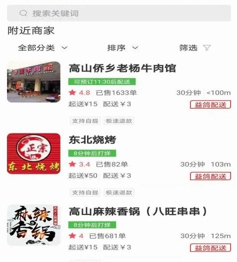入驻标准:把实体门店、高评分、堂食区域作为商家入驻的基本要求,以此保障餐品品质。