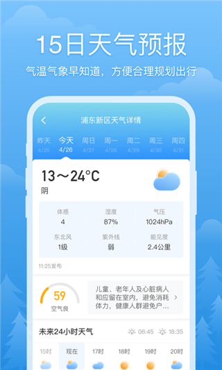心晴天气,一款助你轻松把握天气变化的软件。一旦出现异常天气,它会及时提醒,方便你提前防范。软件凭借精准数据,能展示未来15天的天气情况。操作简单便捷,功能丰富多样,让你的生活更高效、更安心。