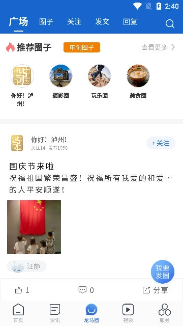 5、进入“龙马圈”后,用户可以发布图文动态,参与热门话题的讨论,还能和其他用户进行互动交流。