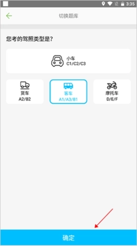 2、接到切换页面,选择你要切换的驾考类型,再点击确定即可切换啦。