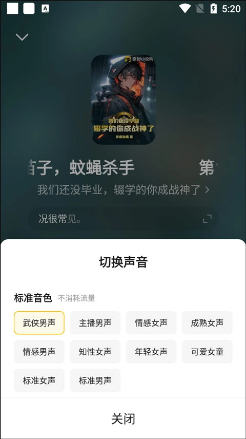 2、软件为各位带来了武侠男声、主播男声、情感女声、成熟女声等等声音可以自由切换