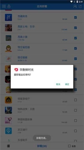 1,智能卸载功能:专业的安卓程序卸载利器,智能直接删除程序文件和关联缓存文件。