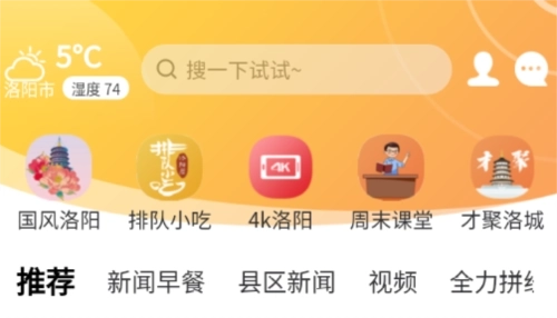 2、五大视频栏目包含国风洛阳、排队小吃、4K洛阳、周末课堂、才聚洛城;