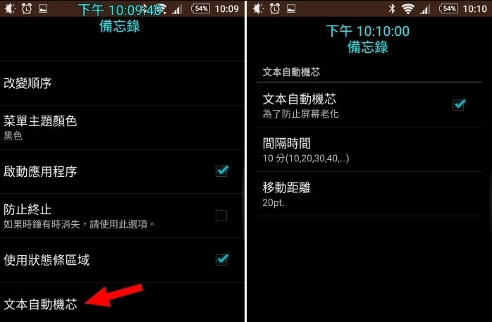 由于开启后信息区块会固定显示在同一位置,建议进入「文本自动机芯」功能,使其每隔一段时间自动轻微位移,以此防止屏幕因长期显示同一内容而出现老化问题。